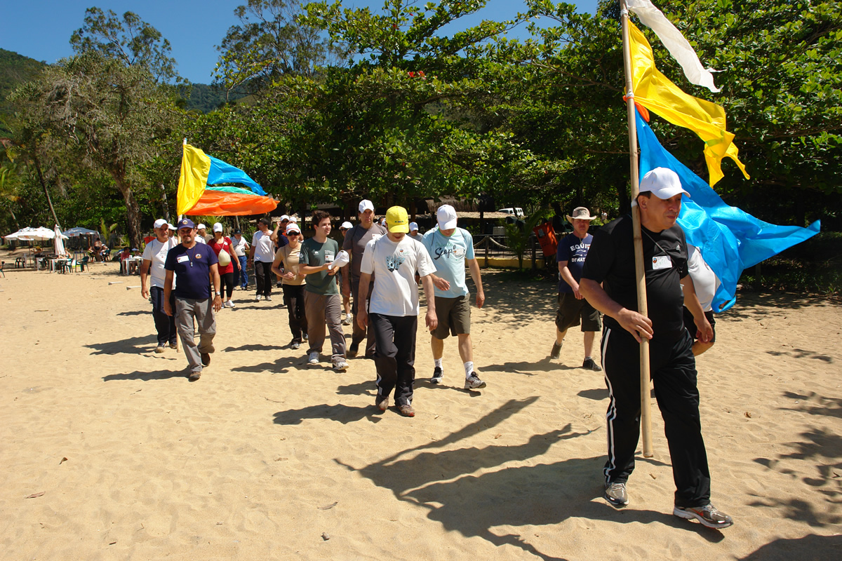 Atividade encantadora em que o grupo chega de barco/escuna a uma praia desconhecida e deserta e ao desembarcar encontra uma série de atividades para realizar até conquistar a praia por completo.