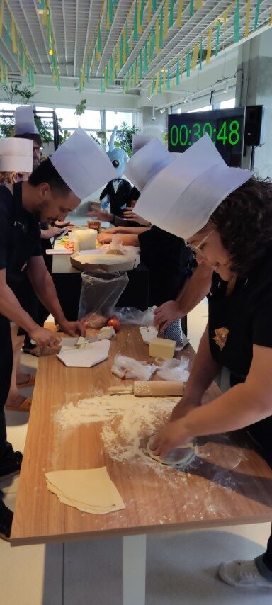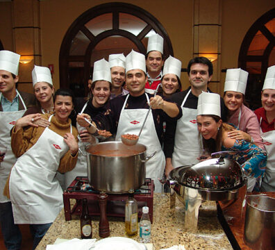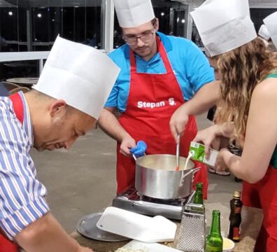 Outra clássica atividade de integração onde os participantes são surpreendidos com a notícia de terem de fazer sua própria refeição, montando a decoração do salão, cozinhando, servindo os outros e até mesmo preparando uma música tema.
