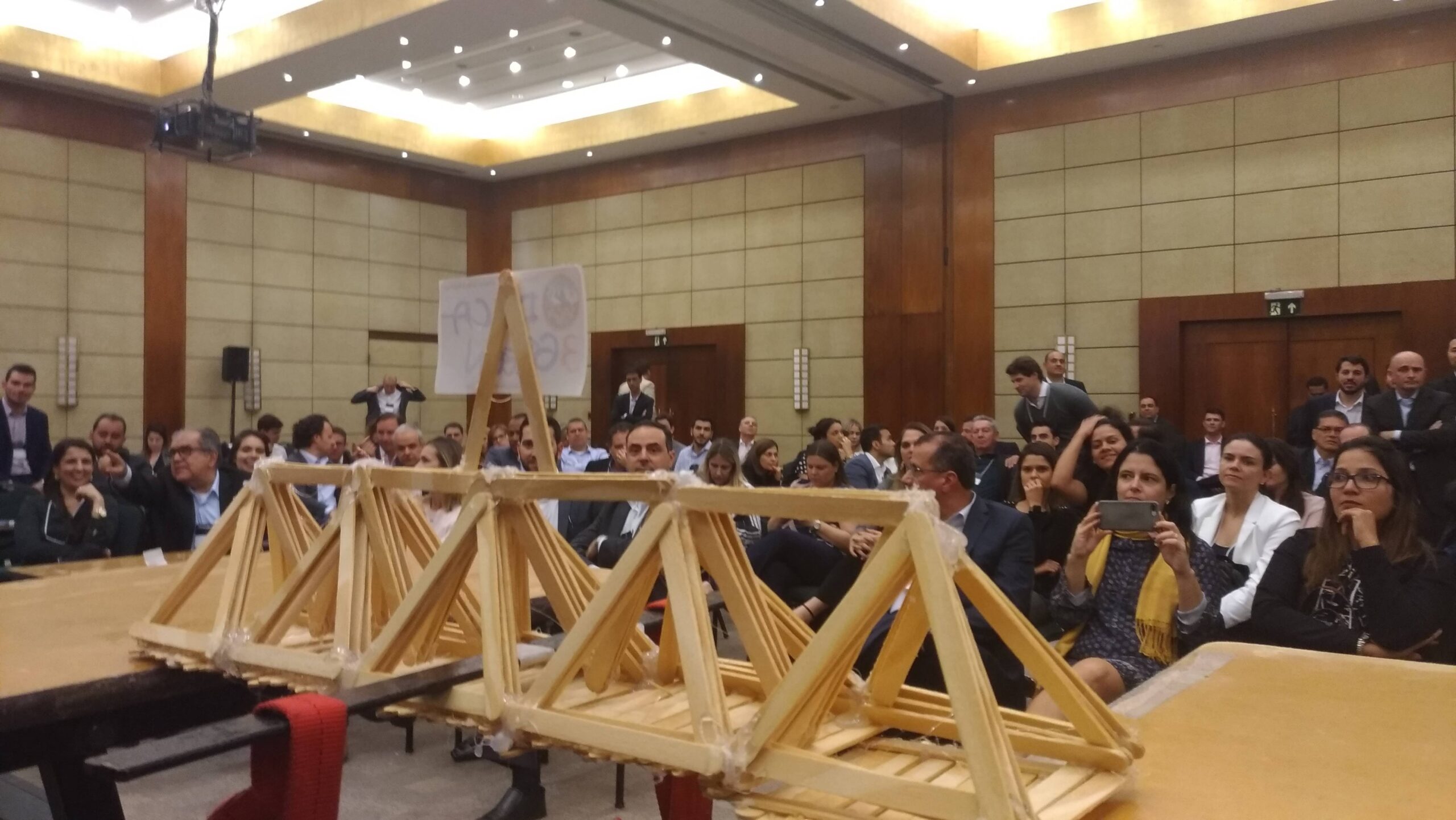 Atividade em que os participantes, divididos em grupos, com recursos como palitos de sorvete e cola quente, tem que montar uma ponte com 200 palitos capaz de aguentar o maior peso possível em um teste de ruptura final.Quebra cabeças gigante