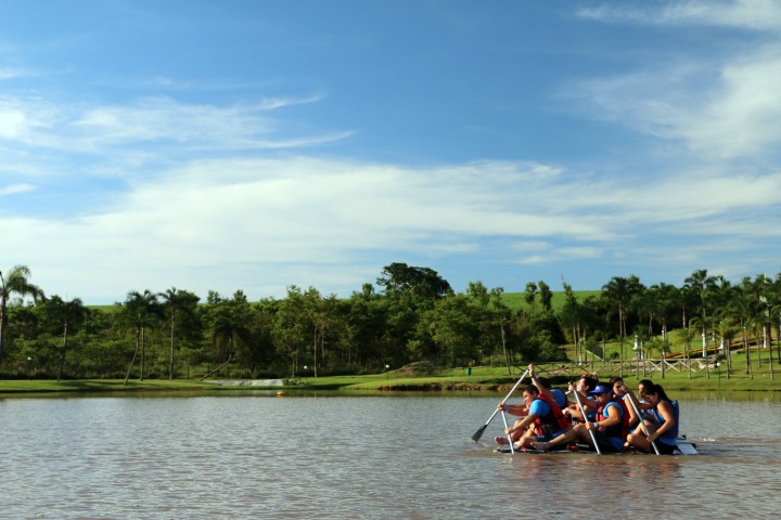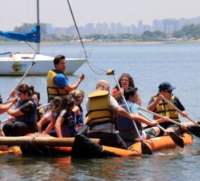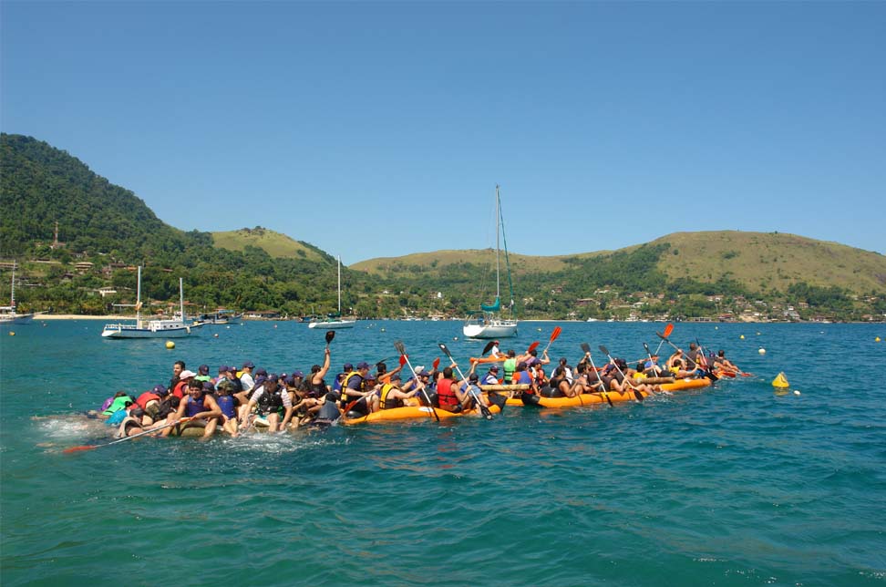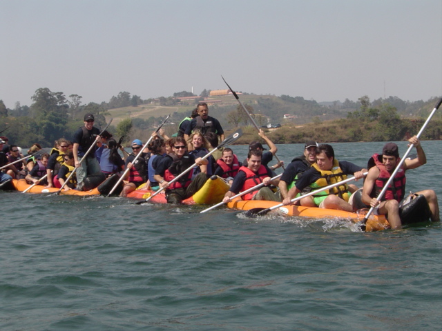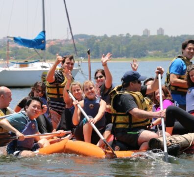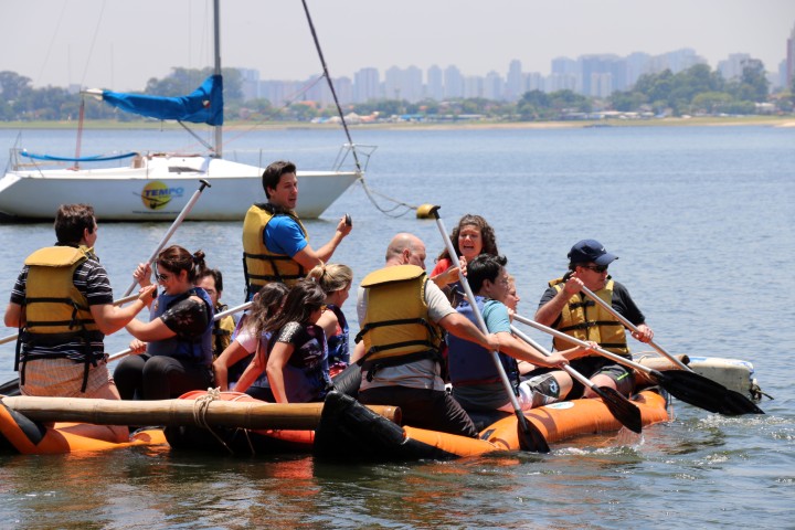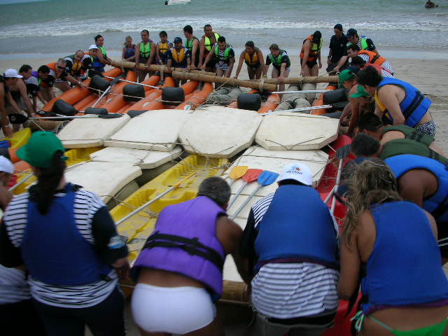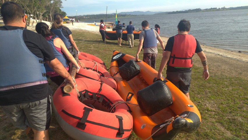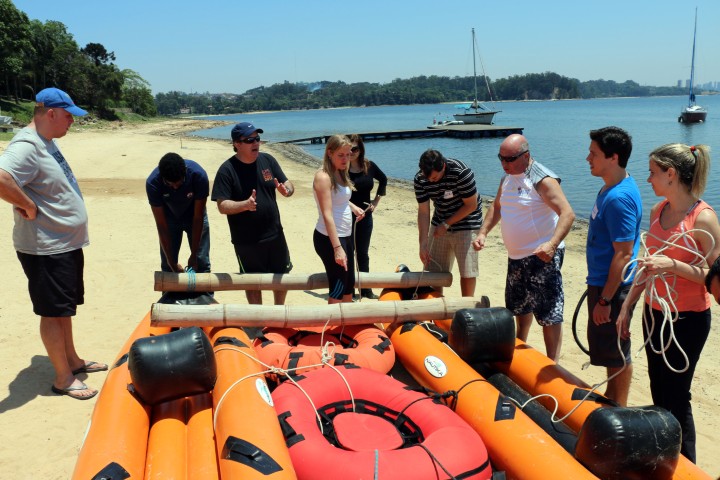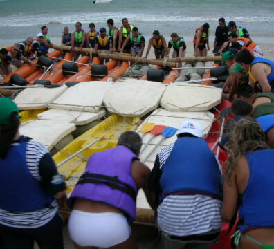Clássica atividade em que o grupo precisa planejar, montar e colocar uma embarcação única, capaz de levar todas as pessoas envolvidas, em um mar ou lago.
