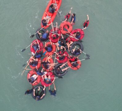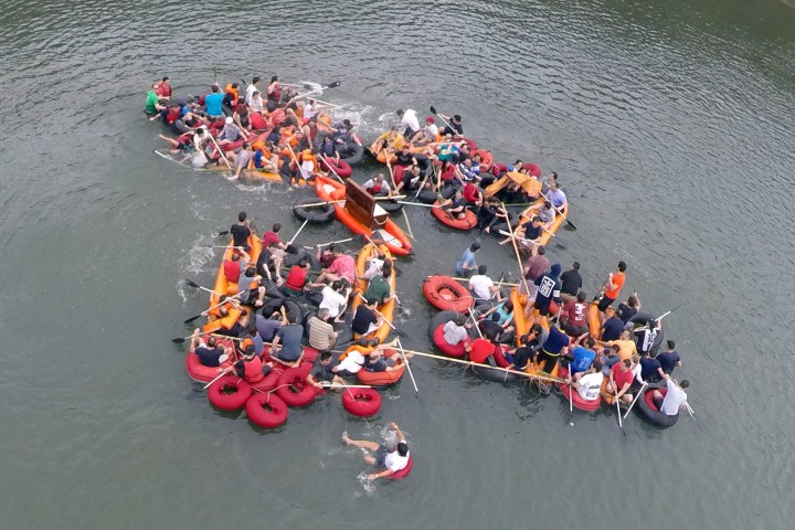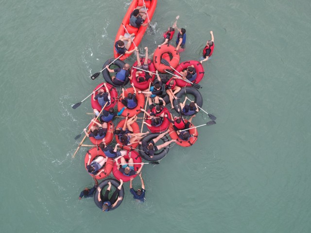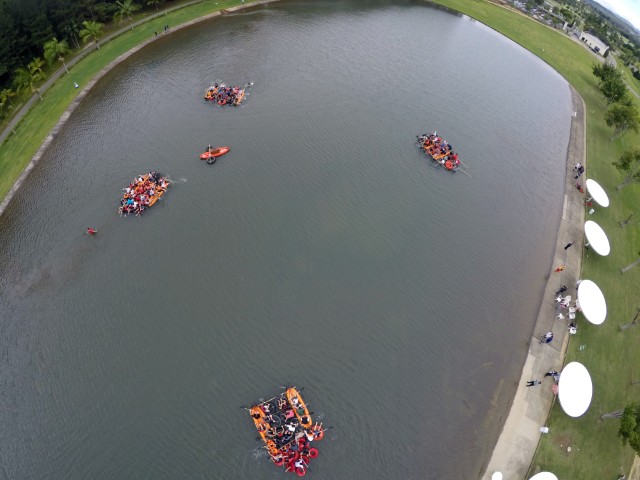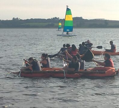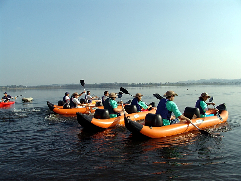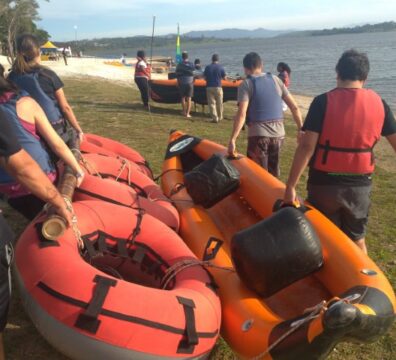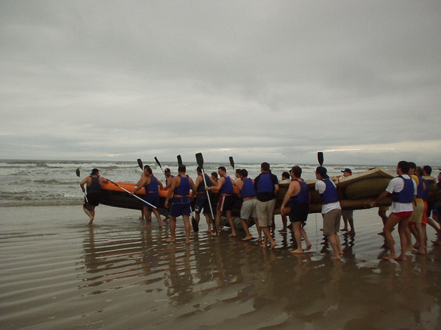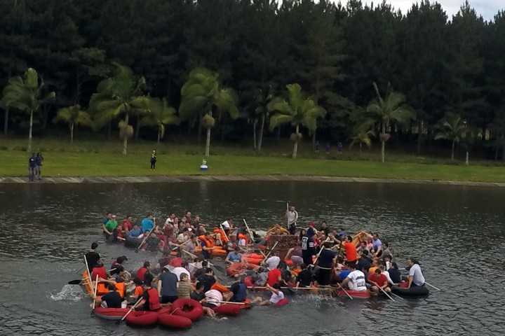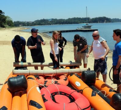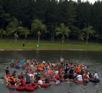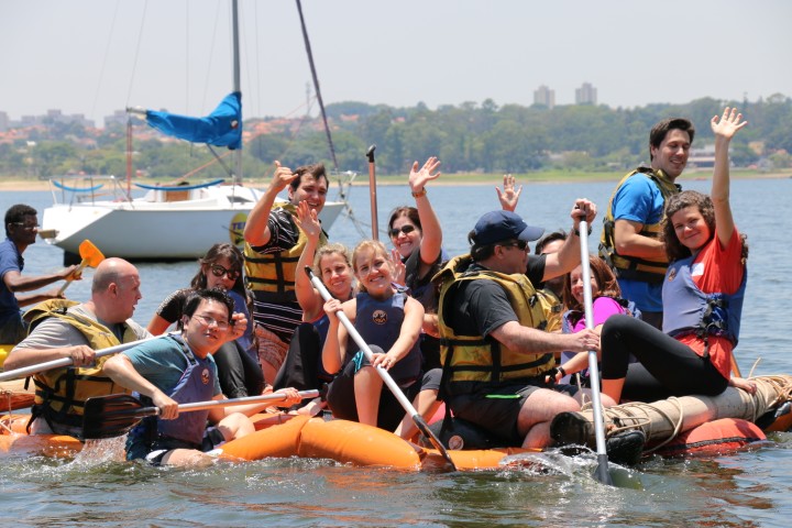 Clássica atividade em que o grupo precisa planejar, montar e colocar uma embarcação única, capaz de levar todas as pessoas envolvidas, em um mar ou lago.