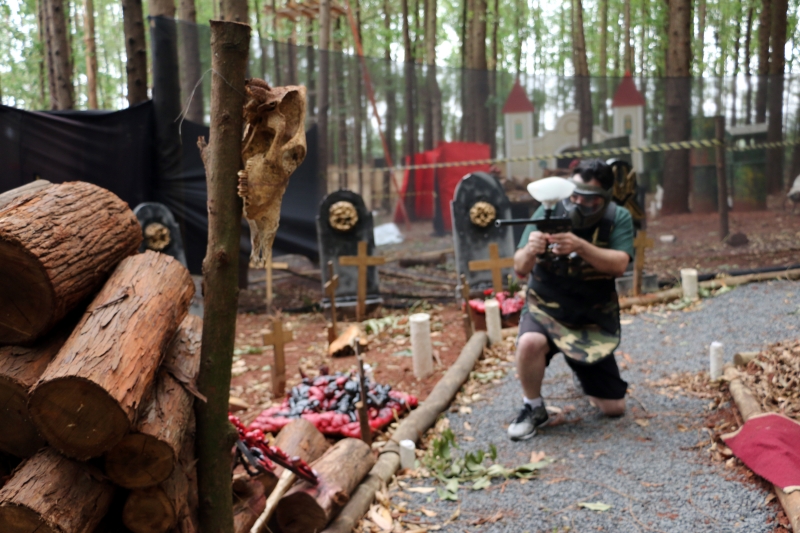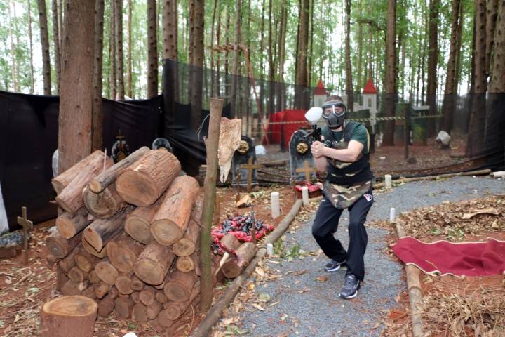 Empolgante atividade de guerra onde os grupos combatem entre si em um campo especialmente preparado, com proteções adequadas para os participantes.Ponte de palitos