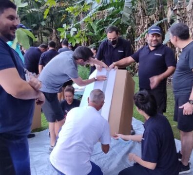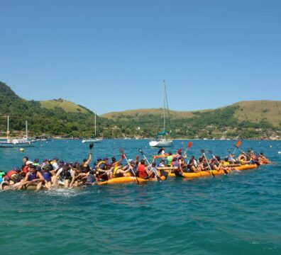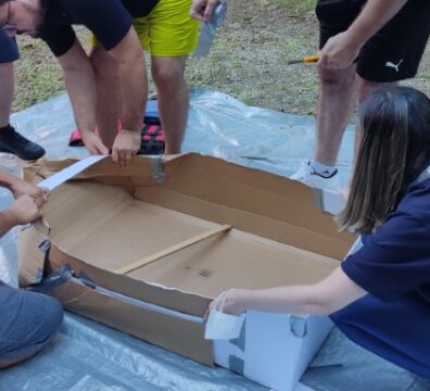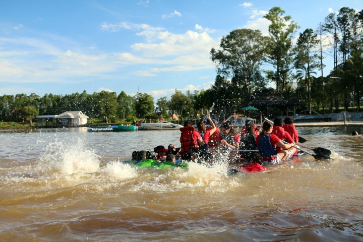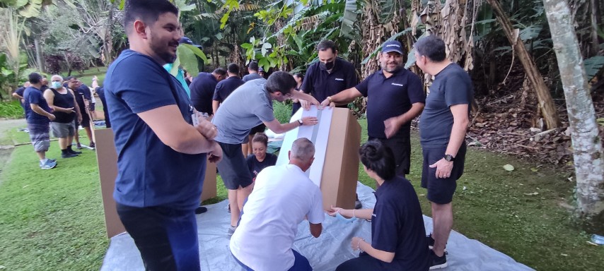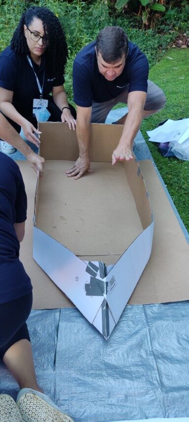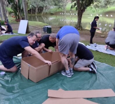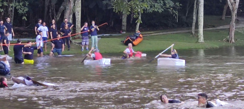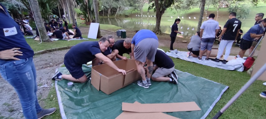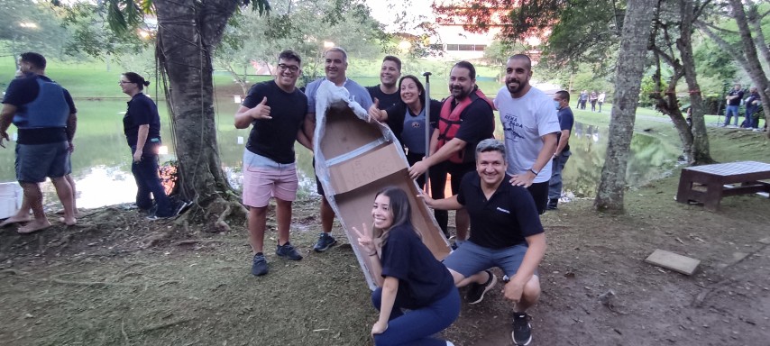 Em uma atividade de estratégia, coordenação e integração, os participantes deverão construir com diversos recursos, barcos de papelão capazes de transportar uma pessoa flutuando no lago ou piscina por um percurso.