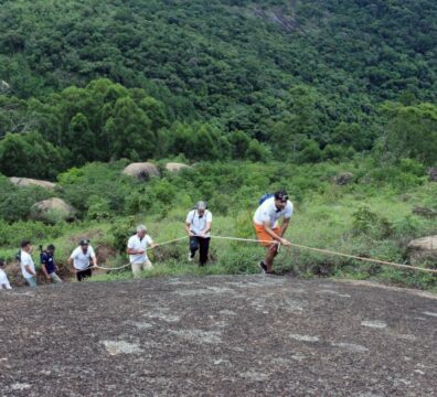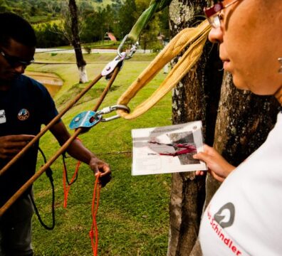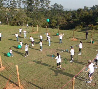 Circuito de dinâmicas e atividades em altura realizadas em ambientes diferentes com debriefings e amarrações de conteúdo realizado pela consultoria.