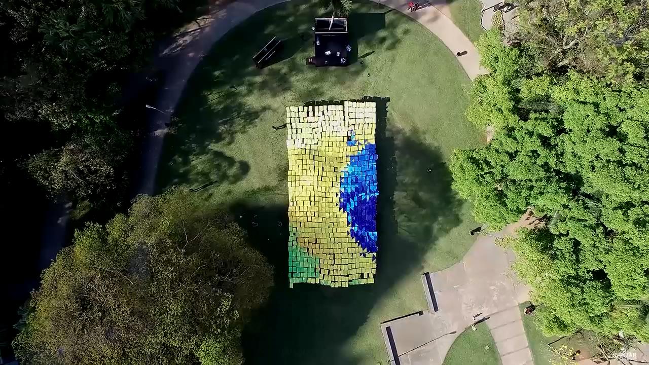 Atividade irmã do Quebra Cabeça Gigante em que os participantes tem de montar as caixas de papelão, colar ou pintar a sua parte e depois montar o mural.